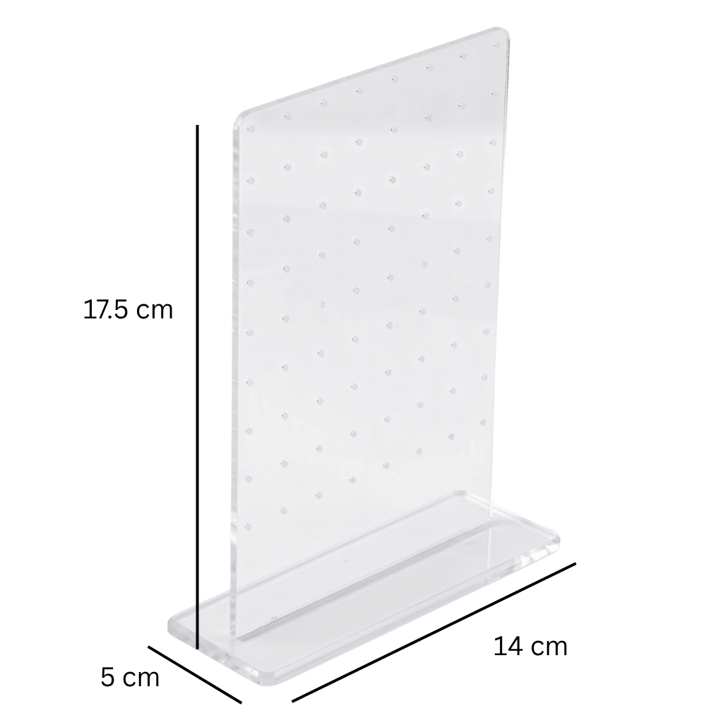 Zadbaj o profesjonalną prezentację swojej kolekcji biżuterii dzięki minimalistycznemu ekspozytorowi wykonanemu z wysokiej jakości, transparentnego akrylu. Ten stylowy stojak został zaprojektowany z myślą o ekspozycji kolczyków, labretów oraz innej drobnej biżuterii, łącząc w sobie funkcjonalność z nowoczesnym designem.