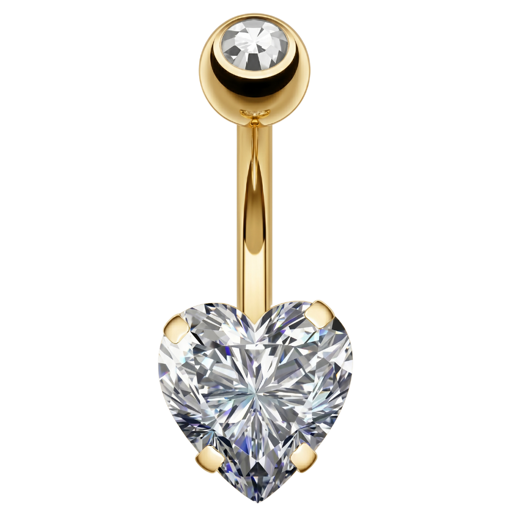 Stalowy Kolczyk Do Pępka - Cyrkonia w Kształcie Serca