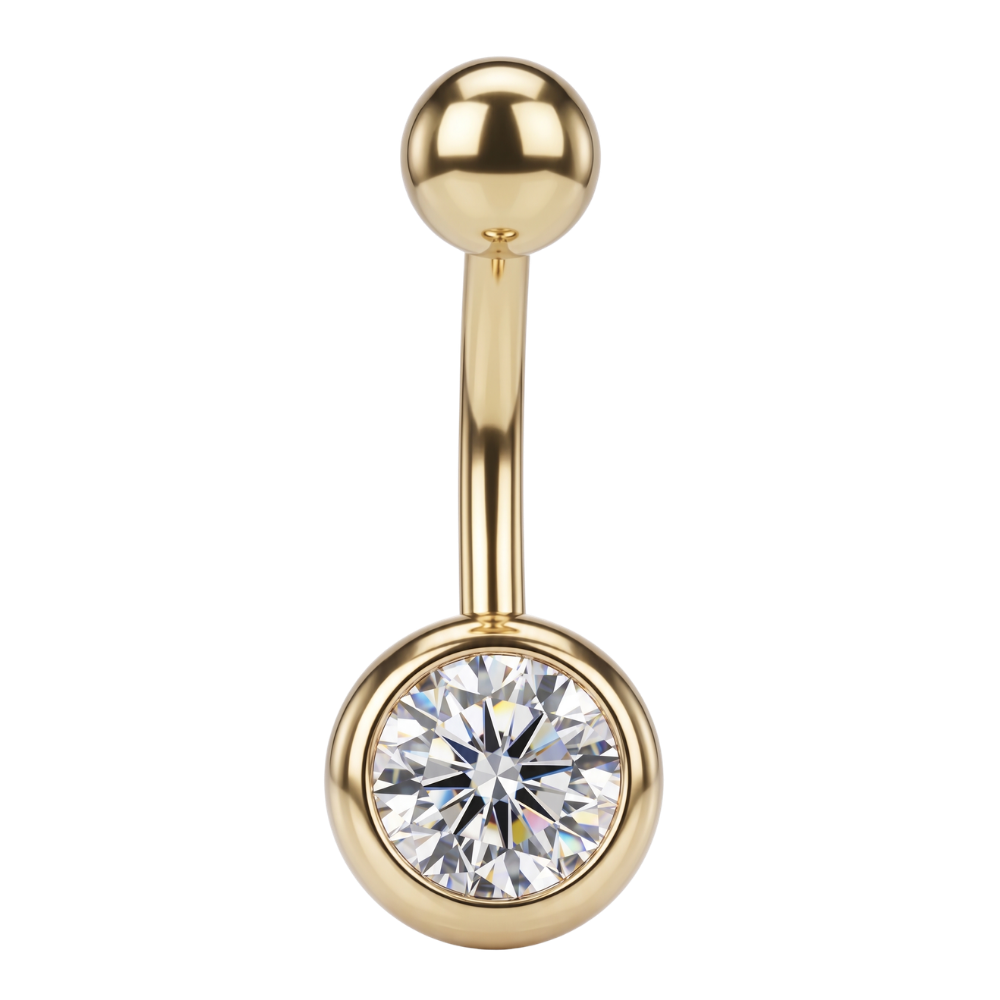 Postaw na ponadczasową elegancję z klasycznym kolczykiem do pępka typu Banan. Ten model łączy w sobie prostotę gładkiej, polerowanej kuleczki z efektownym blaskiem dużej, centralnie osadzonej cyrkonii. Oprawa nie tylko bezpiecznie trzyma kamień, ale także nadaje mu nowoczesny, biżuteryjny wygląd, który idealnie odbija światło przy każdym ruchu.